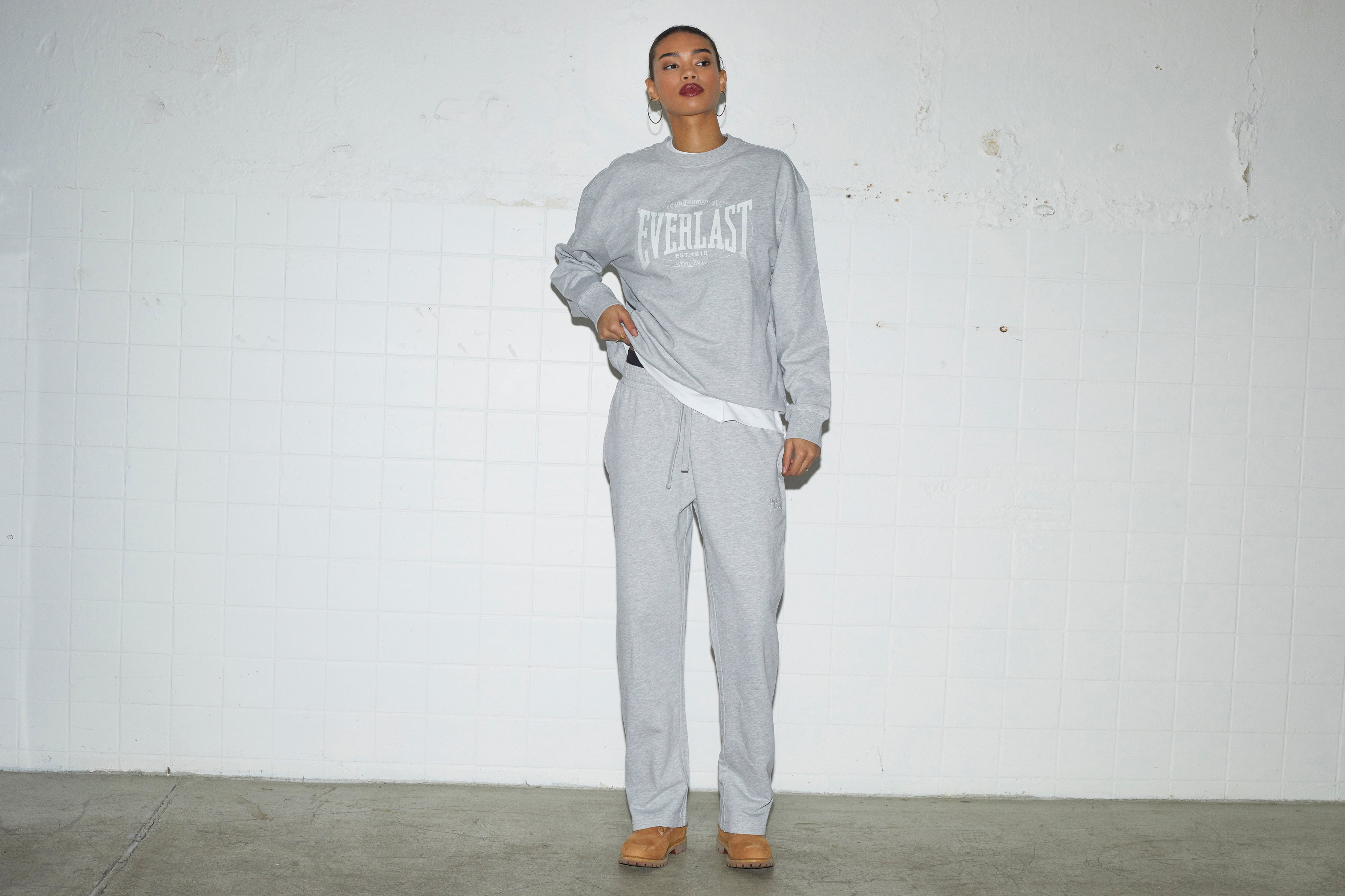 The sweatshirt is made of a soft cotton blend and adorned with a distinctive EVERLAST logo on the chest, which gives a classic and authentic sportswear look.