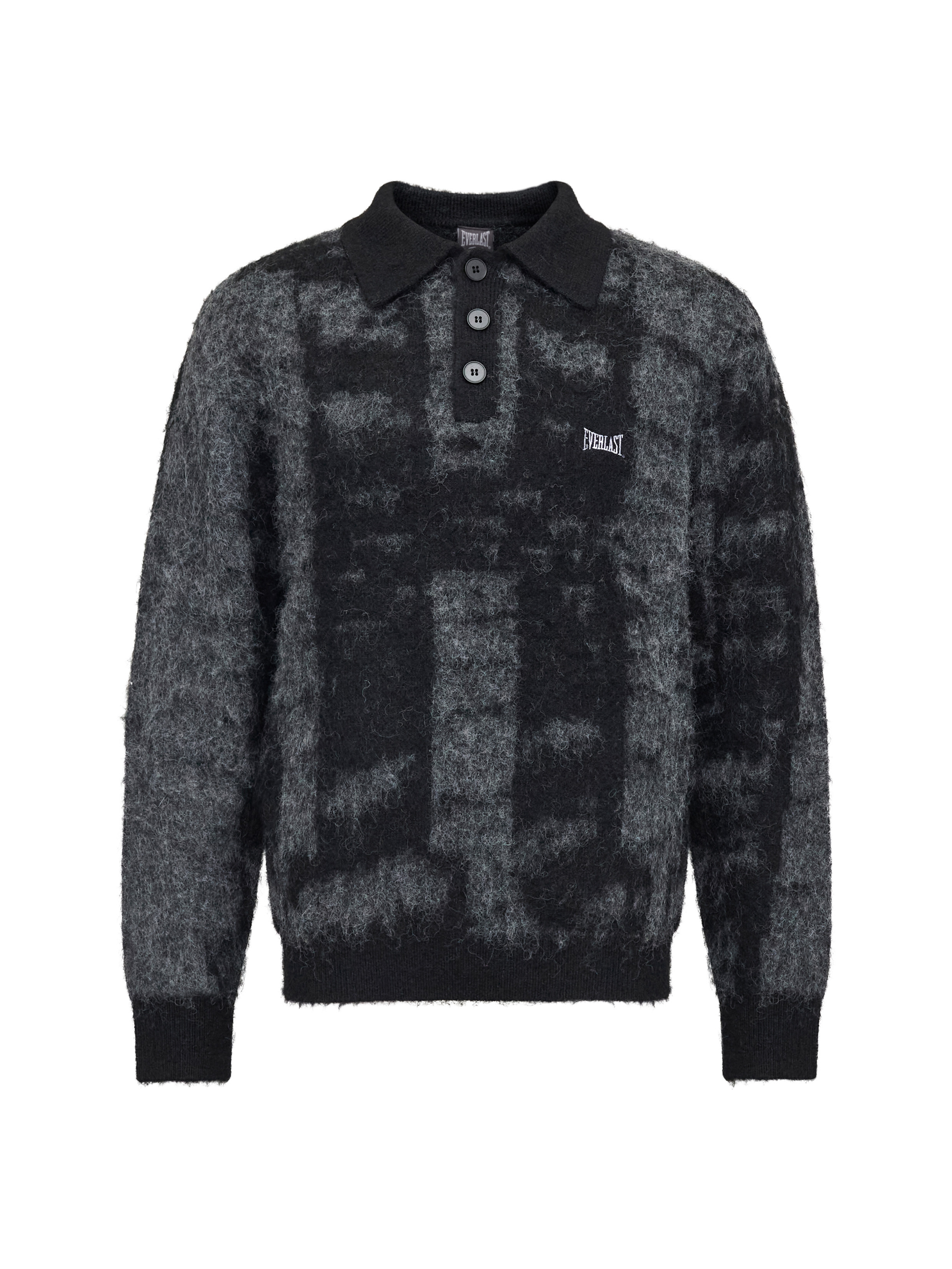 • The “Lightning Knit” comes in an exclusive expression from top to bottom. Designed with a structured polo fit featuring three-button closure and premium mohair blend for a soft yet elevated finish. Grey and black tones define the design, creating a sharp look.