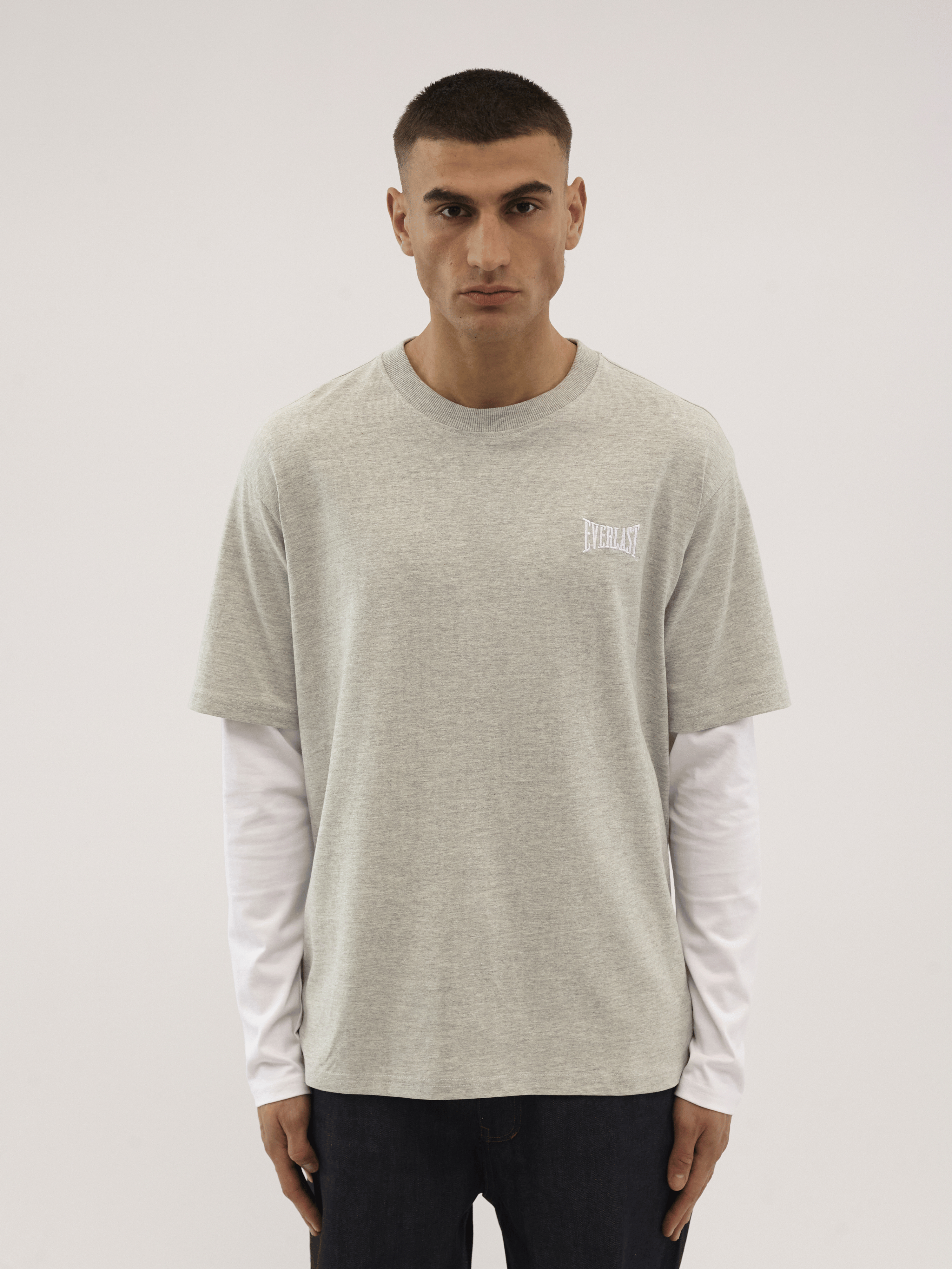 Klassisk T-shirt med layered look og et rent, sporty udtryk. Enkelt frontlogo og stort Everlast-tryk på ryggen. Inspireret af sport og street – lavet til hverdagsbrug.