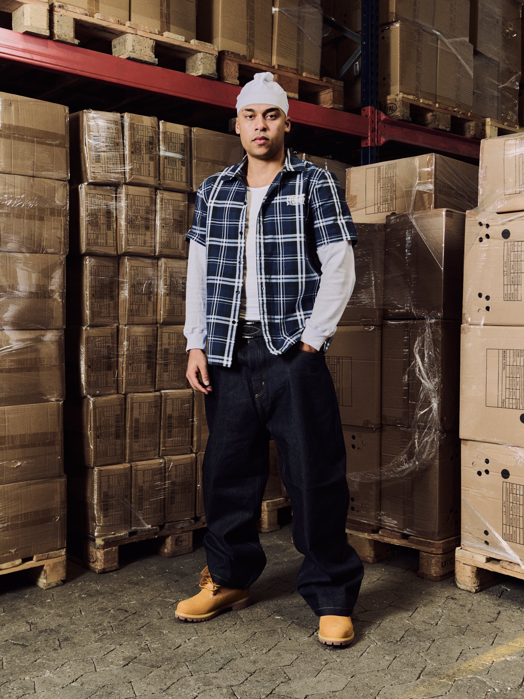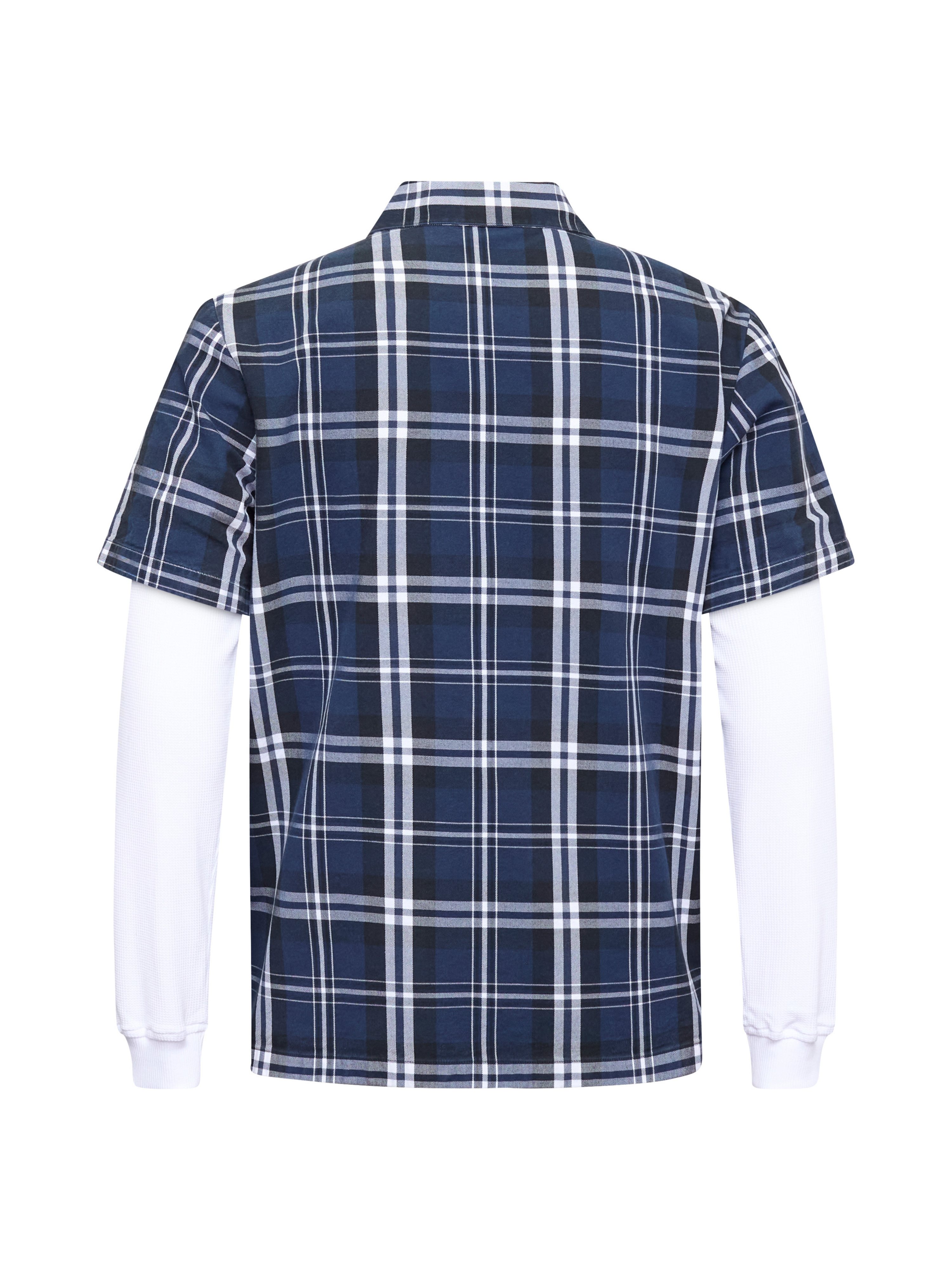 The “Rebel Shirt” is a long sleeve tee in jersey, featuring checkered shirt with solid white sleeves underneath. The design has a clean silhouette and a relaxed fit for everyday wear.