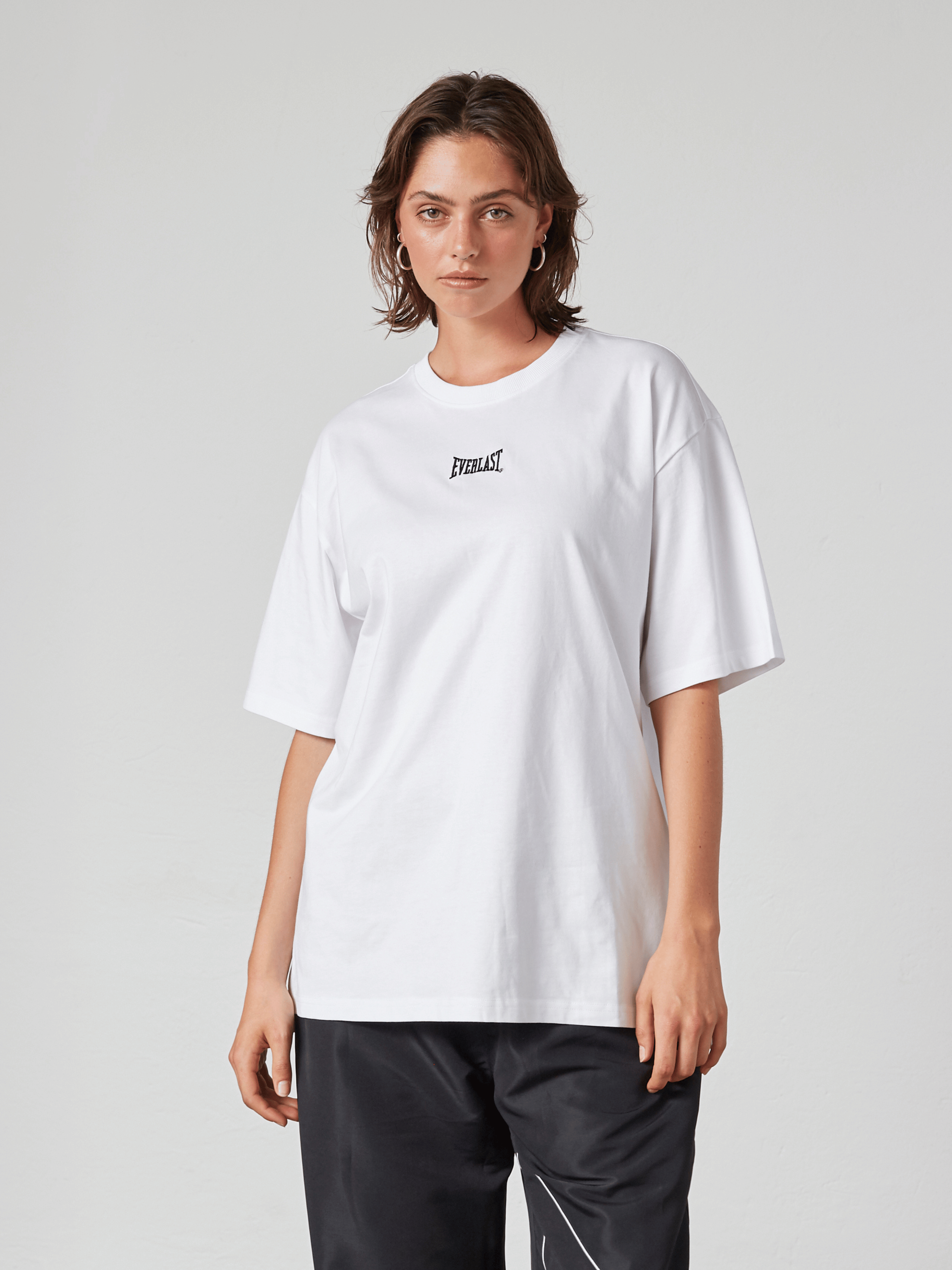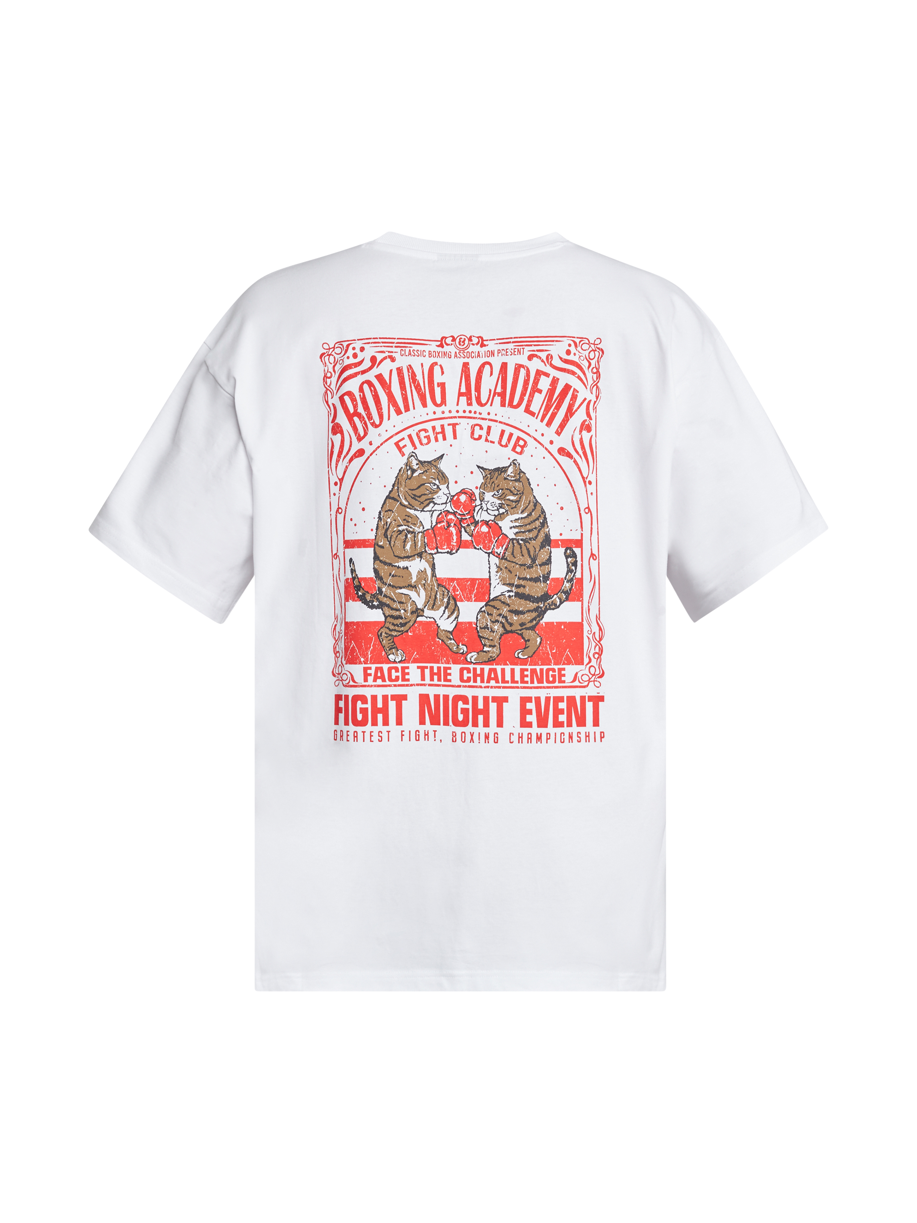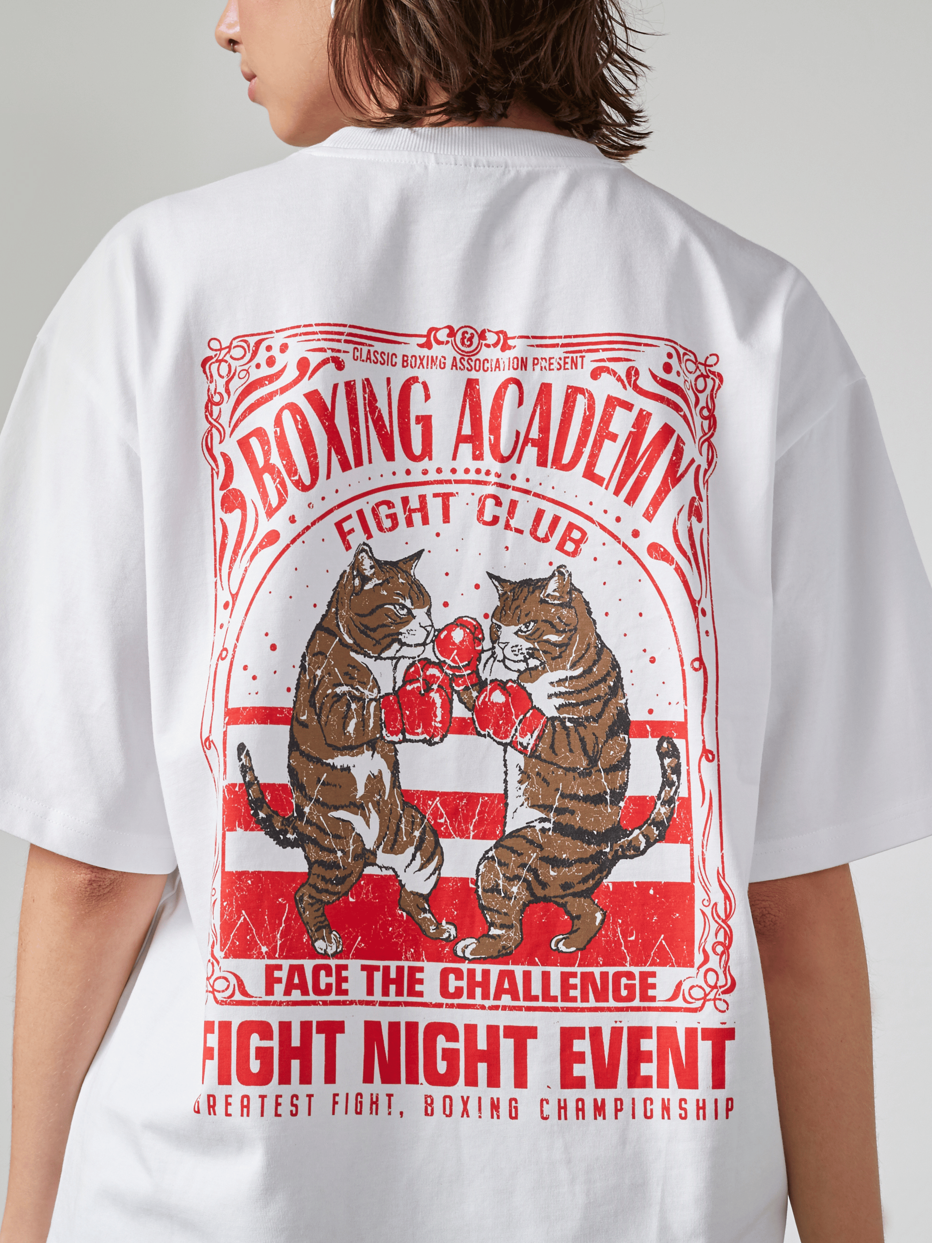 Klassisk T-shirt med et råt, grafisk backprint og et rent frontudtryk. Inspireret af boxing heritage og vintage fight posters. En stærk statement tee med street-attitude.