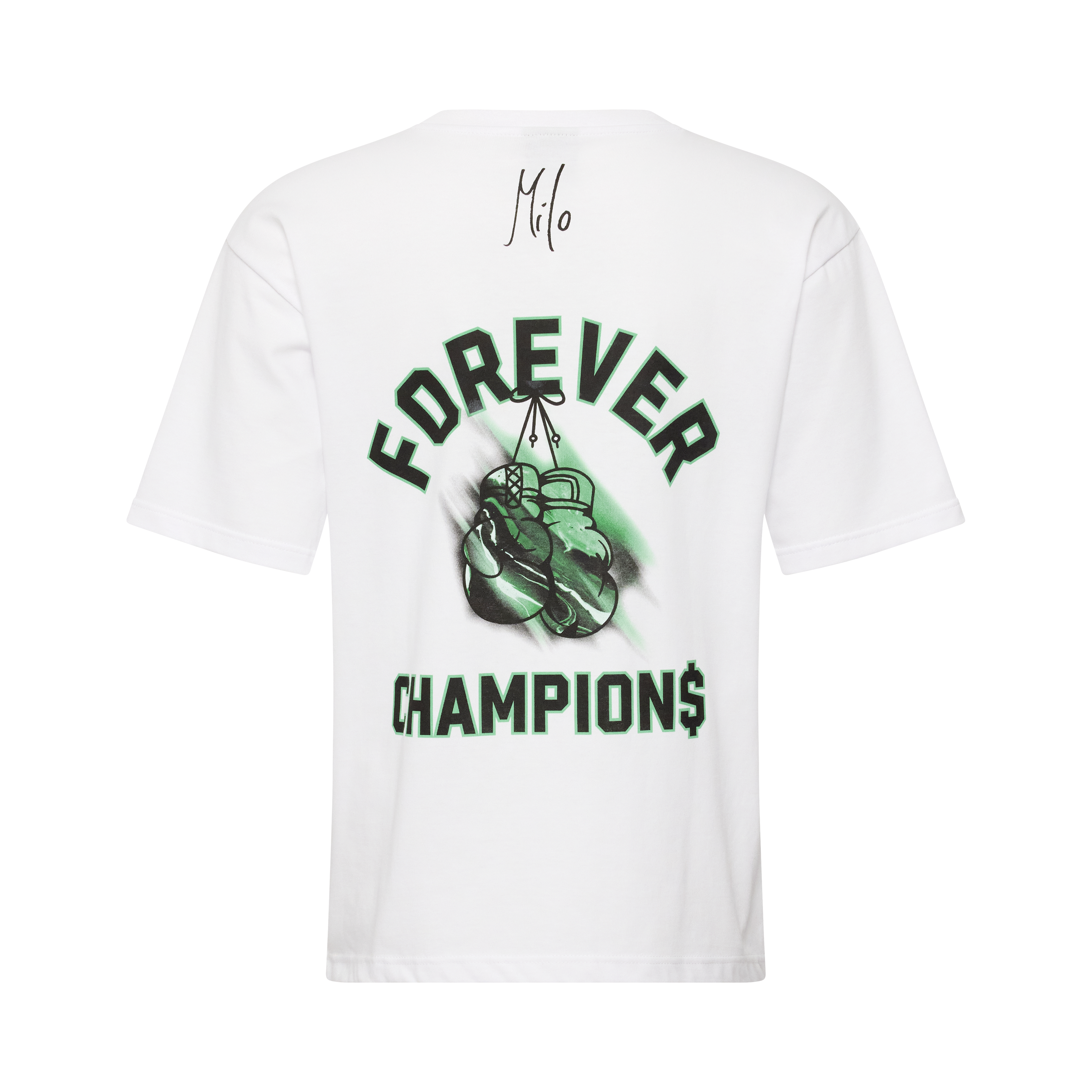 ‘Forever Champion’ Tee featuring a blured green box logo and his take on the ‘Forever Champion’ backprint featuring a blured green & black gradient and his signature.